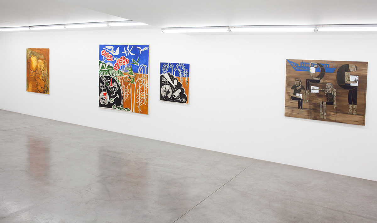 En nuestro amigo Giambiagi, de quien siempre hablamos, como en Quiroga, aparece un vínculo con el paisaje, el irse a un lugar no como un aislamiento, sino como una postura. En eso pensaba, en esa relación del paisaje como una militancia. Esta es la primera vez que aparecen en tus pinturas estas aglomeraciones de texto y personas. Las pinturas de paisajes podrían ser múltiples zonas y tiempos. A la vez las marchas tienen un anclaje mucho más específico temporalmente, tienen una fecha y un lugar precisos.