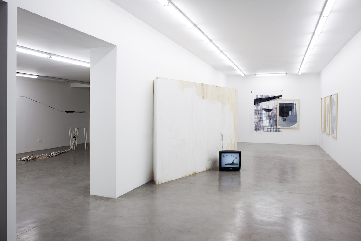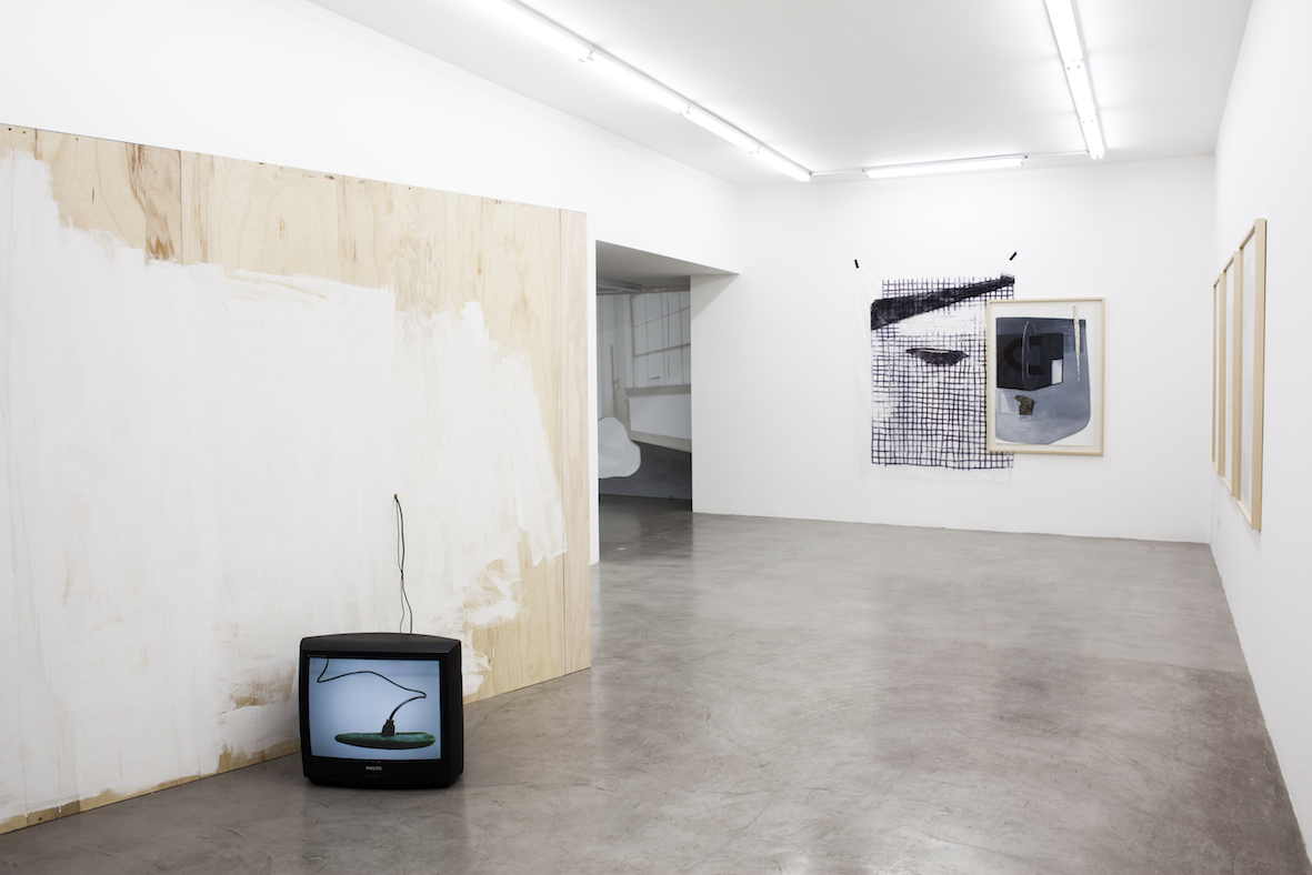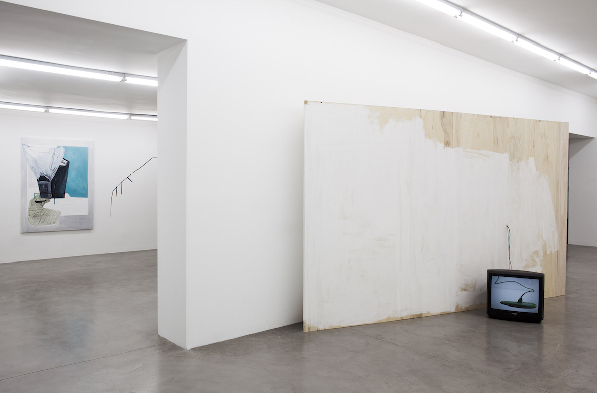 Sofía Quirno’s exhibition in Hache raises a possible scenario about the random relationships that occur between the people, the objects and the spaces that contain them. The work is projected as a fluctuating whole where painting works as a catalyst for the experience of these usual relations that, second by second, we see and ignore with equal care. The paintings of Quirno explore the everyday with a reduced palette, concise, and with a determined stroke that pays special attention to the minimum. The installation, which takes over both rooms of the gallery, incorporates the paintings into the exhibition space with projections, TVs, murals, objects, modifying the architecture to give rise to the performance of contemplation and pictorial experience.