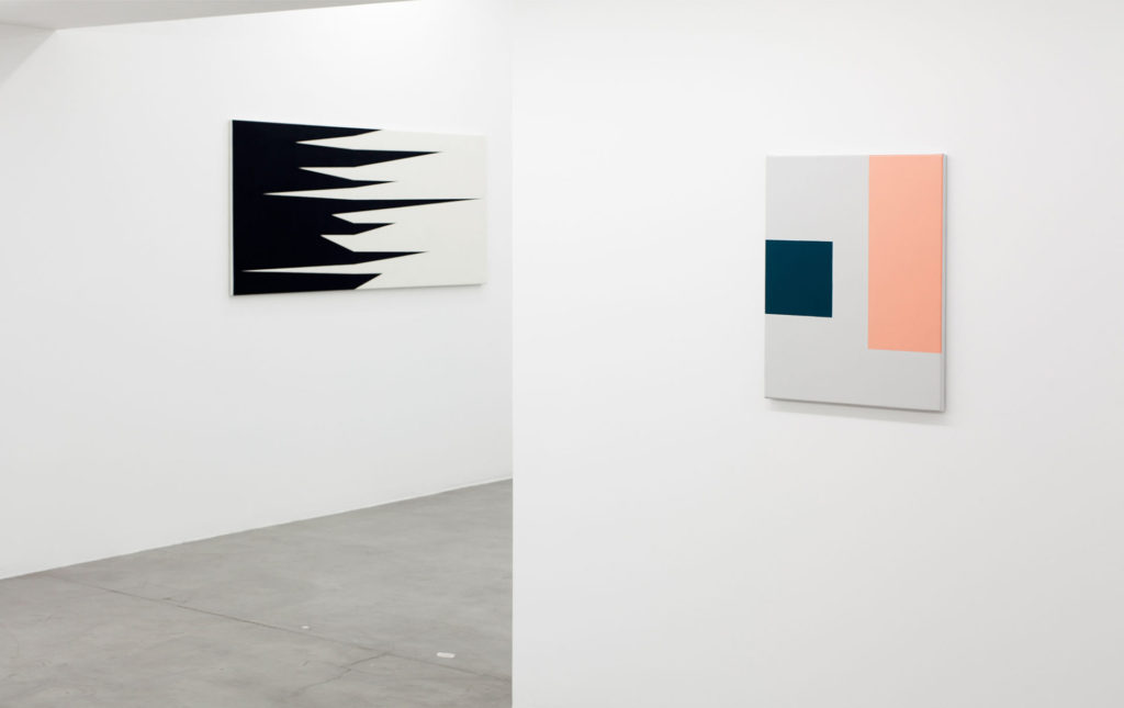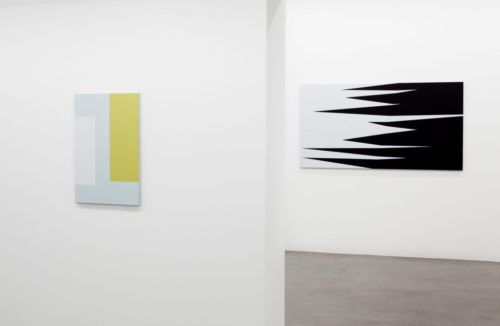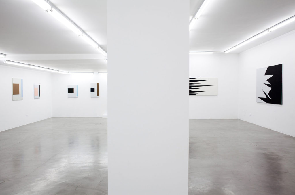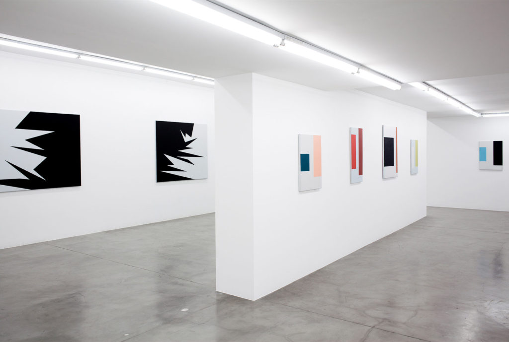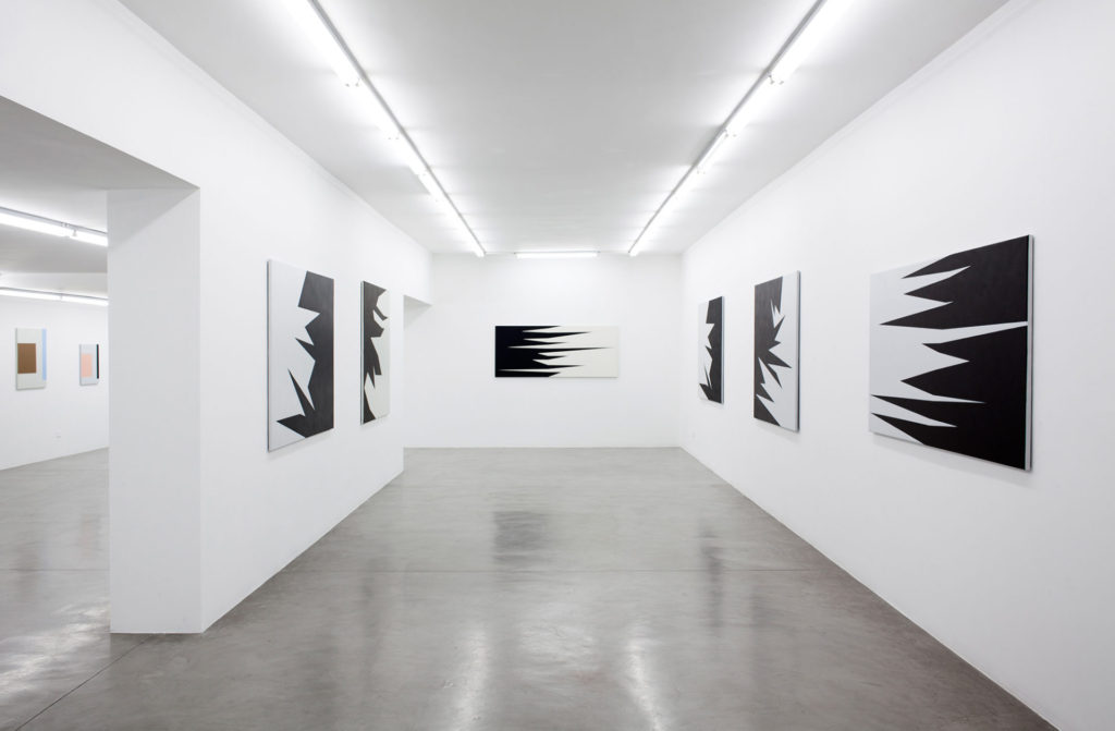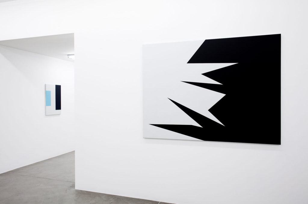 In Gilda’s art, these problems return like ghostly whispers; these debates resurface in her paintings. The figurebackground reading is the central concern of the works in this exhibition. Sharp, evasive, oblique, they confront us with a precise problem: Is the black surface the figure? Is the white plane the background? Or is it the other way around? Not one or the other. These are forms in tension, striving not to become background or figure, but for both to stay “up front,” affirming surface and negating any possible three-dimensional reading. These paintings once again alight on that delicate spot of pictorial composition to challenge it anew and to propose a specific solution. Fierce forms shatter the canvas as object. The irregular shapes of the cut-out frames are nowhere to be found here; the canvas, formerly malleable, is now, it seems, rigid and brittle surface.